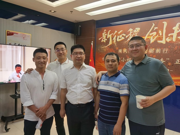 國富投資集團黨委常委、副總經(jīng)理、恒銀公司黨支部書記馬國棟同志受邀出席啟動儀式并向小程序主創(chuàng)人員魯炎同志頒授“特殊貢獻獎”獎牌和5000元特殊貢獻獎金。公司董事長李剛同志、總經(jīng)理王軍同志及全體班子成員在輕松愉悅的氣氛中全程參加了啟動儀式,與總部員工合影留念并進行現(xiàn)場互動。