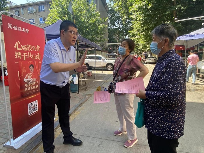為進(jìn)一步深入貫徹落實(shí)處置非法集資部際聯(lián)席會(huì)議相關(guān)工作要求,根據(jù)河北省打擊和處置非法集資工作領(lǐng)導(dǎo)小組印發(fā)的《2023年防范非法集資宣傳月活動(dòng)動(dòng)作方案的通知》,2023年6月15日,國(guó)富投資集團(tuán)所屬恒銀期貨有限公司(以下簡(jiǎn)稱“恒銀期貨”)聯(lián)合東風(fēng)路派出所,由恒銀期貨總經(jīng)理湯志江、副總經(jīng)理張南組織公司各部門骨干力量深入社區(qū),開展了防范非法集資的線下宣傳活動(dòng)。